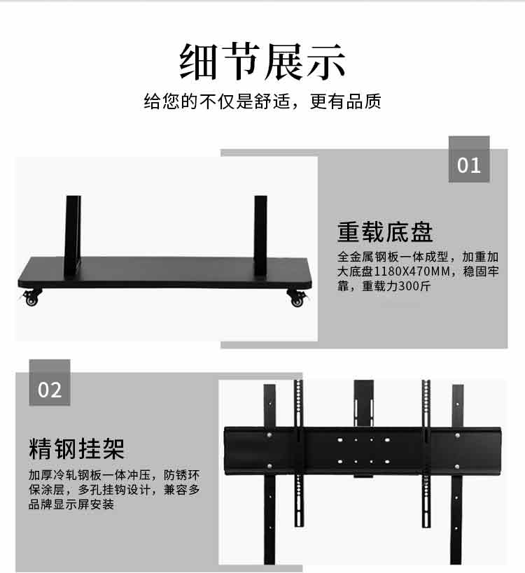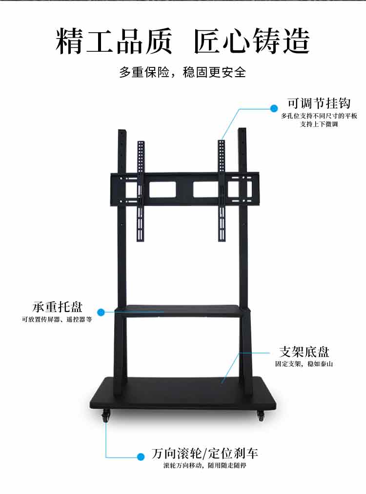 黑色教學會議移動支架專用液晶電視、廣告機、觸控成人看片在线、電子白板、教學會議等,高低升降,隨意調節。
