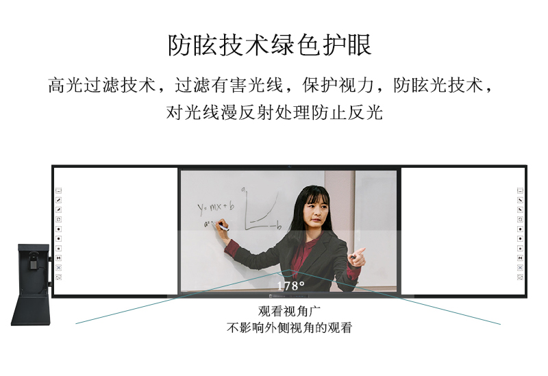 機身保護——獨特的推拉門鎖設計,保護前置按鍵及接口,還能收納白板筆和教鞭;