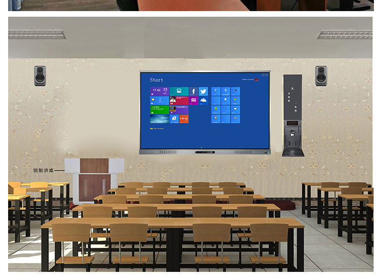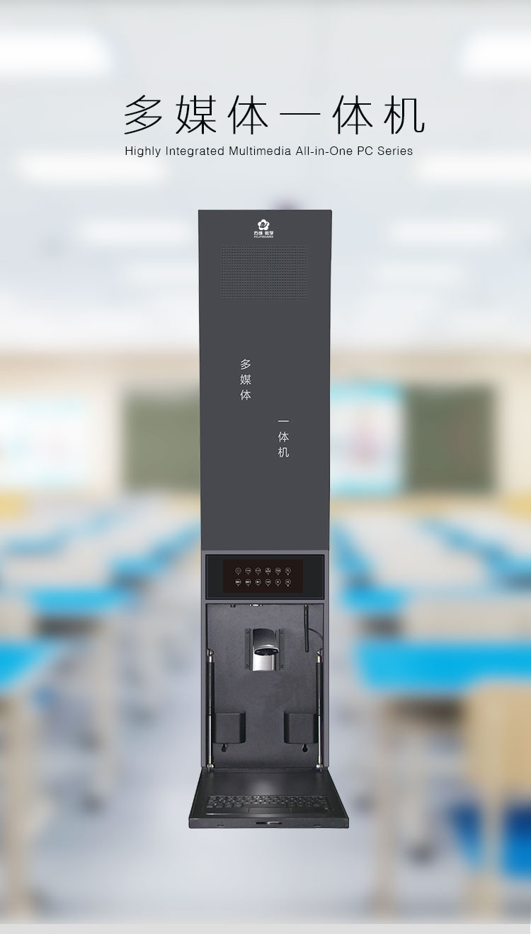 高集成化——滿足常規的多媒體教室功能要求,將功放、音響、電腦等多媒體設備高度集成,無需電子講台、液晶顯示器等設備占據寶貴的教室空間,幹淨整潔