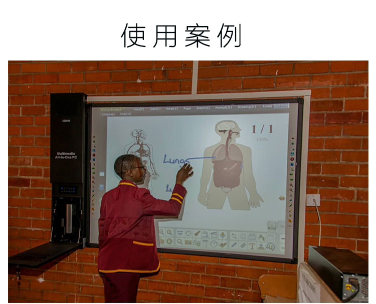 高互動性——高靈敏度無線鼠標鍵盤和無線話筒,可隨意暢遊教室內的任何位置,學生也可參與多媒體教學的全過程